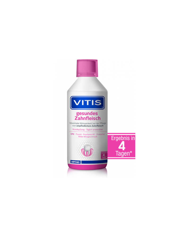 VITIS® gesundes Zahnfleisch Mundspülung bietet die umfassendste Zusammensetzung für jeden Tag, ideal für Menschen mit Zahnfleischbluten, Zahnfleischentzündungen oder empfindlichem Zahnfleisch. Maximale Wirksamkeit bei der täglichen Pflege.
